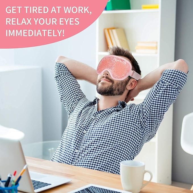 - RELIEVE DISCOMFORT: The gel bead eye mask is a quick and easy way to relieve your eye discomfort. Freezing the cooling gel eye mask and put it on your eyes to reduce puffiness from a night of poor sleep or a late night, or to relieve tired eyes that have been staring at a computer all-day