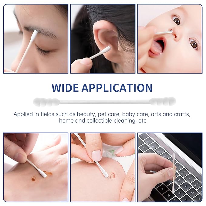 - 【Widely Used】: Double spiral cotton swabs can be applied in Perfect for touching up nail polish, lipstick & lip gloss, eye liner., pet care, baby care, arts and crafts, household and collectibles cleaning and more, cleaning electronics, etc