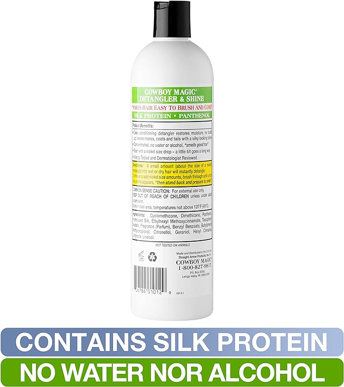 - Detangles as you rub it in and keeps on working, resulting in less grooming time and less product used, saving time and money.