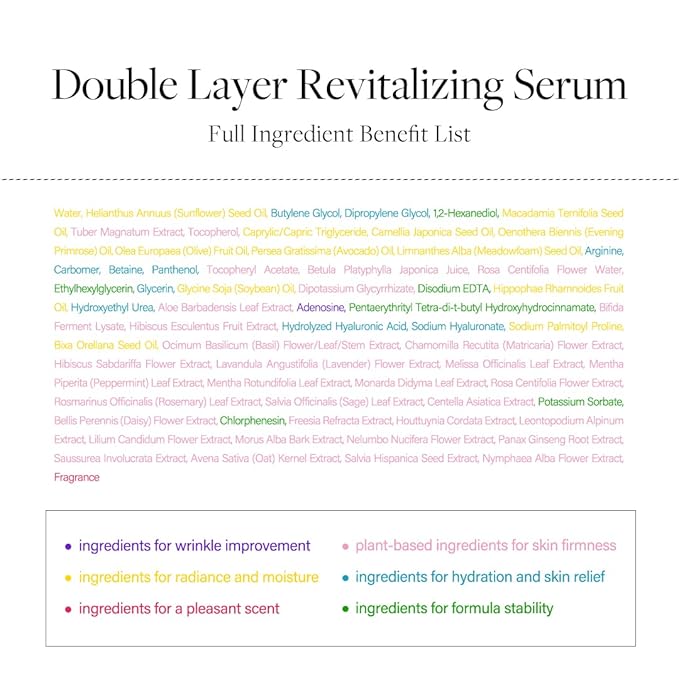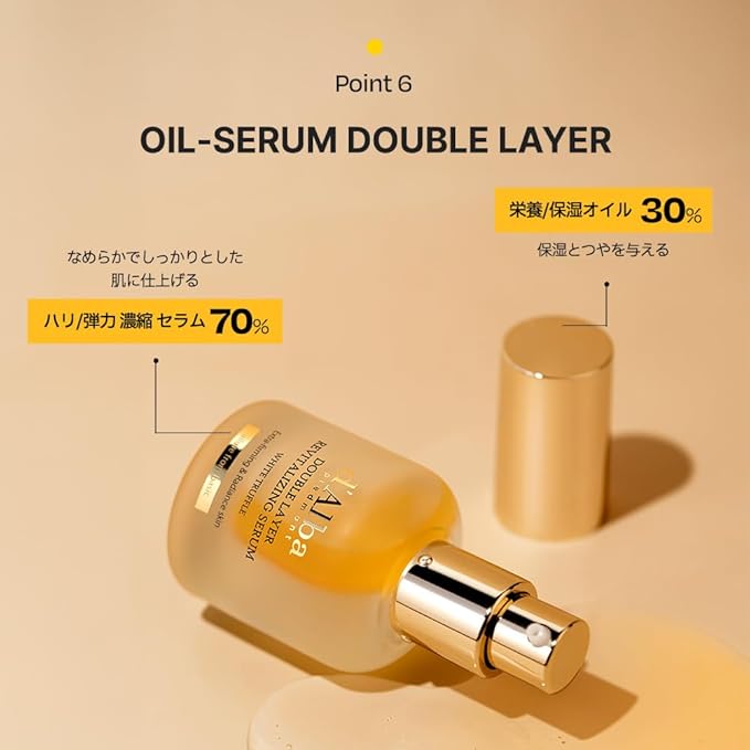 - Surfactant Free, with a 30% glowing oil layer and a 70% elastic serum layer, the double solution contains properties needed to create healthy, glowy skin.