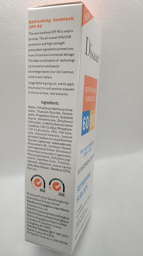 - DISAAR Refreshning Sunblock Very High Protection UVB + UVA 60-90 Sunscreen 80ml