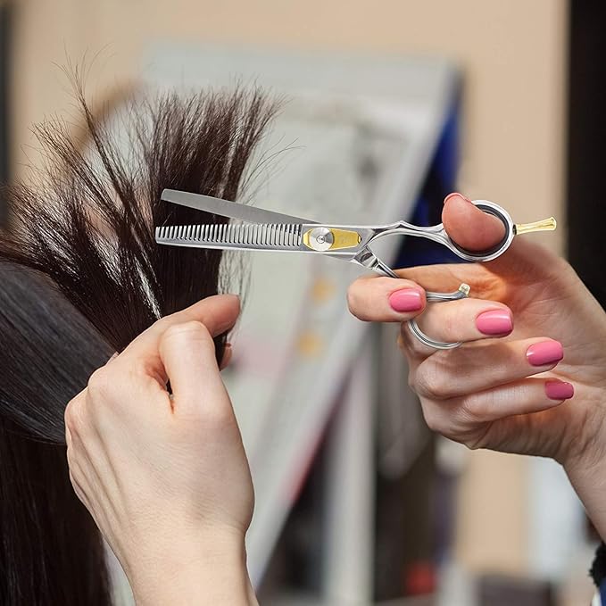 - Versatile - With a length of 6.5 inches, the Professional Razor Edge Hair Thinning Scissor is safe and easy to use on men, women, the elderly, children, and babies! With a sleek stainless steel texture, our scissor reduces messy hair clutters as no hair gets caught in between its thinning blades, unlike other hair thinning scissors on the market.