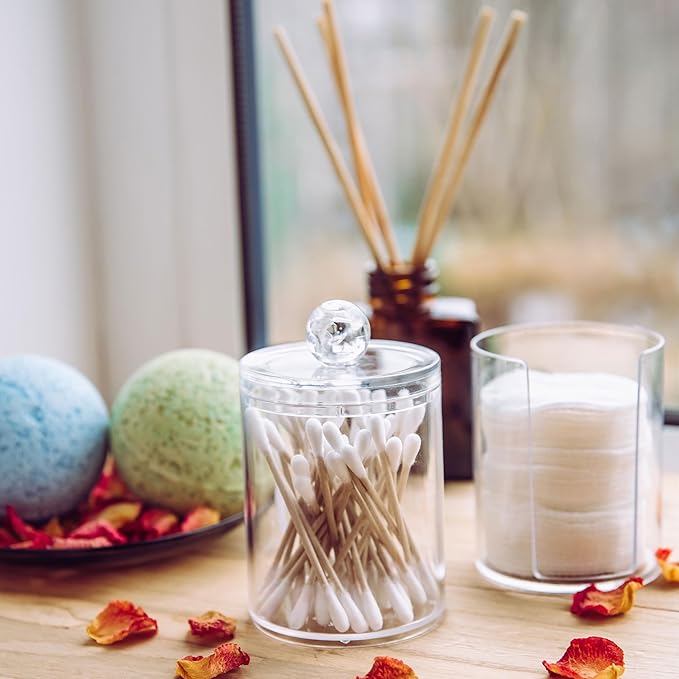 - Makeup Storage Cosmetics Organizer Included - This kit includes a clear box organizer to keep your toner pads, cotton rounds and swabs neat and tidy; the cotton rounds holder is a great countertop organizer