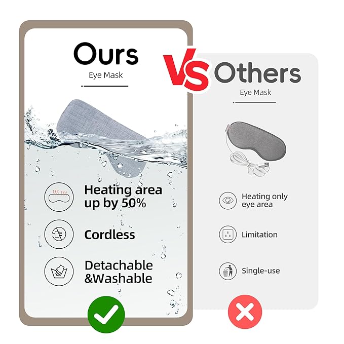 - Therapeutic Heated Eye Mask: Experience unparalleled relaxation and improved sleep with our warming eye mask. Enjoy the gentle warmth surrounding your eyes, fostering a serene environment ideal for relaxation
