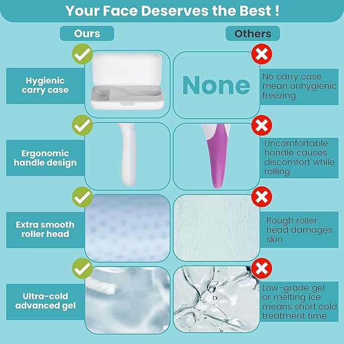 - 3. Extra Care: This face massager comes with a portable freezer case to prevent mixing with food and other items in the freezer. Its head beads are highly active, providing a rapid and long-lasting cooling sensation. This versatile tool also functions as an ice face roller and face depuffer.