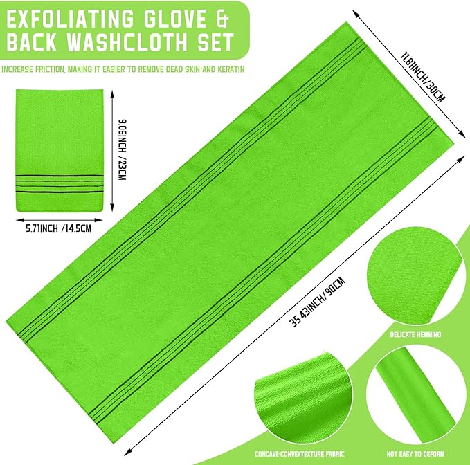 - Package Information: you will get 1 long exfoliating back washcloth bath towel and Korean exfoliating mitt; Sufficient quantity will meet your using needs, and you can share them with your family
