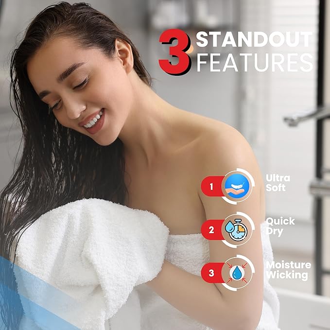- VERSATILE- The terry towel material allows for maximum absorbency making it perfect for daily use in bathroom, spa or gyms. The set fulfills your basic bathroom drying need or simply placed in the guest bedroom.