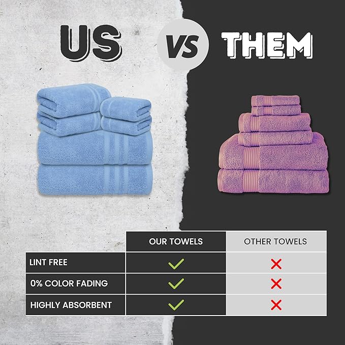 - MULTIPURPOSE & VERSATILE - Perfect combination of softness and strength, the towel set is ideal for everyday usage. Use the towels efficiently in a bathroom, at gym, beach, poolside, salon, spa or even camping trip.