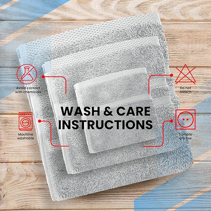 - CARE INSTRUCTIONS: To maintain the towels' quality, we recommend tumble dry them on low heat or hang them to dry. Please avoid using fabric softener, dryer sheets, or bleach, as these chemicals can reduce the material's softness.