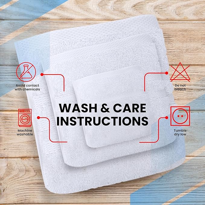 - CARE INSTRUCTIONS: To maintain the towels' quality, we recommend tumble dry them on low heat or hang them to dry. Please avoid using fabric softener, dryer sheets, or bleach, as these chemicals can reduce the material's softness.