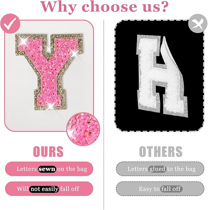 - ☆【Personalized Letter Design】Personalized initial letter makeup bag is designed with stitched glitter sequin letters, you don't have to worry about it falling off. Unique glitter 26 letters design, the shiny gold border and glitter sequin letters shimmer charmingly, the cute flower bet lettering patches have a strong personalized style, making your makeup bag the center of attention.
