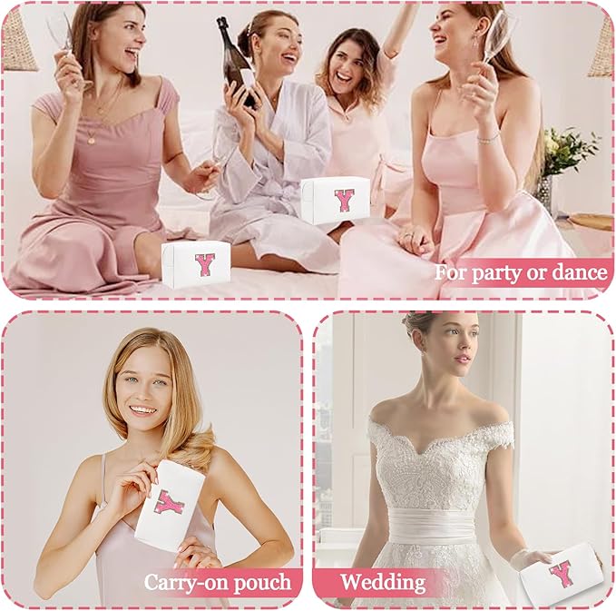 - ☆【Perfect Size】The glitter monogram cosmetic bag measures 6.9*2.6*4.1inch, slightly bigger than your hand. It's perfectly designed size is enough to hold your frequently used cosmetics, toiletries and other essentials. The lightweight and compact size is very convenient to put into your luggage or daily carry-on bag, it is a perfect companion for your outing, find what you need easily.