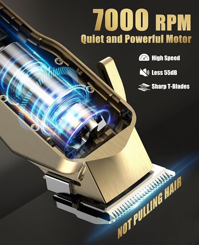 - 𝗤𝘂𝗶𝗲𝘁 & 𝗣𝗼𝘄𝗲𝗿𝗳𝘂𝗹 𝗠𝗼𝘁𝗼𝗿 -- The mens hair clipper is equipped with a high-performance motor that can easily cut through thick, curly, or soft hair as easily as it cuts through soft butter, reducing the possibility of plucking for a faster, smoother, quieter shave.