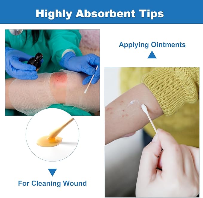 - Medical Grade Cotton Tips: Made of pure natural cotton, the cotton head are solid and firm, won't easily unreavel and fall off