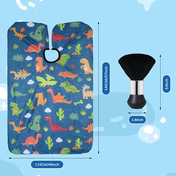 - 47 * 39 inch kids haircut cape , with a metal buckle design at the neckline, it is easy to adjust tightness as you like. At the same time, the neckline fits to the neck perfectly and can prevent hair from falling into and make children comfortable and enjoying while hair cutting.