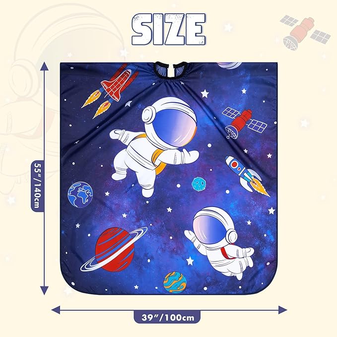 - SIZE MEASUREMENT: 55 X 39 Inch (140 x 100 cm), The Toddler Hair Cutting Cape is long enough to cover children's clothing whether they are sitting or standing. Let kids enjoy the fun of haircut happily.
