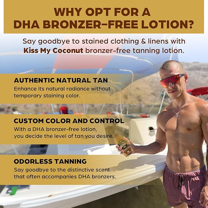 - Coconut Tanning Lotion: Dark Tanning Intensifiers provide a dark golden tan without DHA bronzing agents, suitable for use indoors or outdoors.