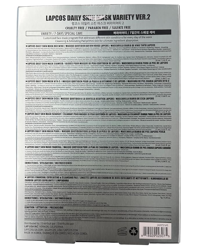 - 7 DAILY SHEET MASKS: This sheet mask set includes 1 Red Wine, Vita C, Cica, Pearl, Seaweed, Escargot, & Charcoal Mask to nourish dryness, tighten, revitalize & improve skin texture.