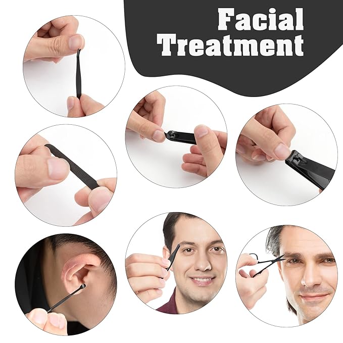 - Manicure Set:Manicure Kit Contains nail and toenail tools,Multifunctional includes hand care, facial care,and foot care tools.Manicure Kit contains 7 tools for hand care, facial care, and foot care which can meet all of your needs.No need to pay for a single nail clipper or Nose Hair Scissors, money can be saved. Even thick nails can be easily cut off directly, No need to use a lot of force.