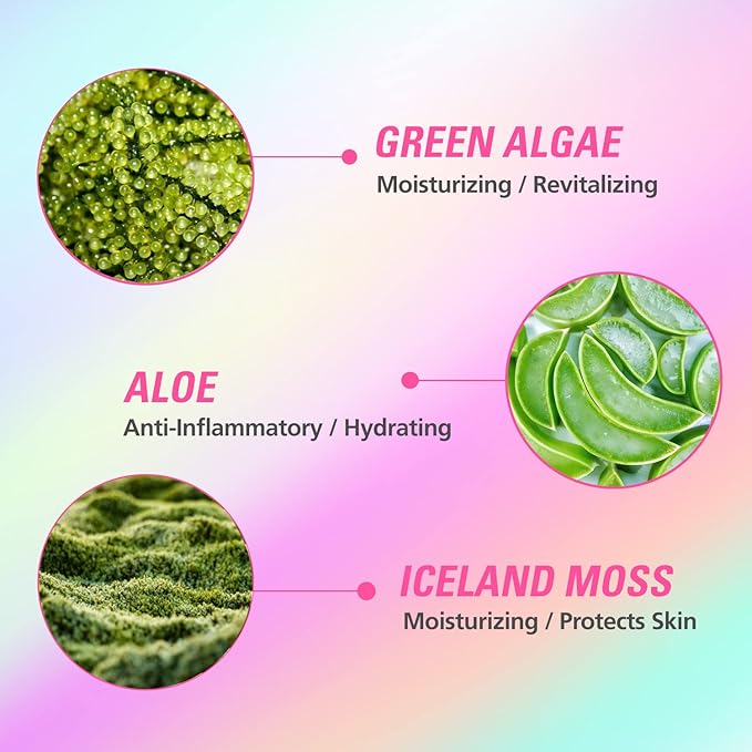 - 💗 BOTANICAL SOOTHING INGREDIENTS: Our Glittering Sheet Mask with Aloe, Caulerpa Lentillifera, and other soothing ingredients work together to quench dry skin by excellent moisture delivery. These face mask sheets are starry sheet masks with a transparent moisture-type essence that helps you achieve glowing skin.