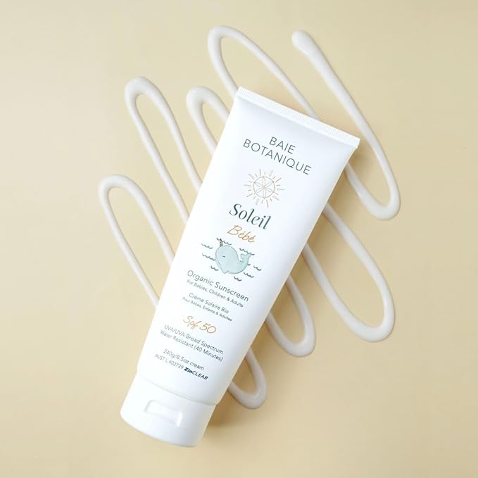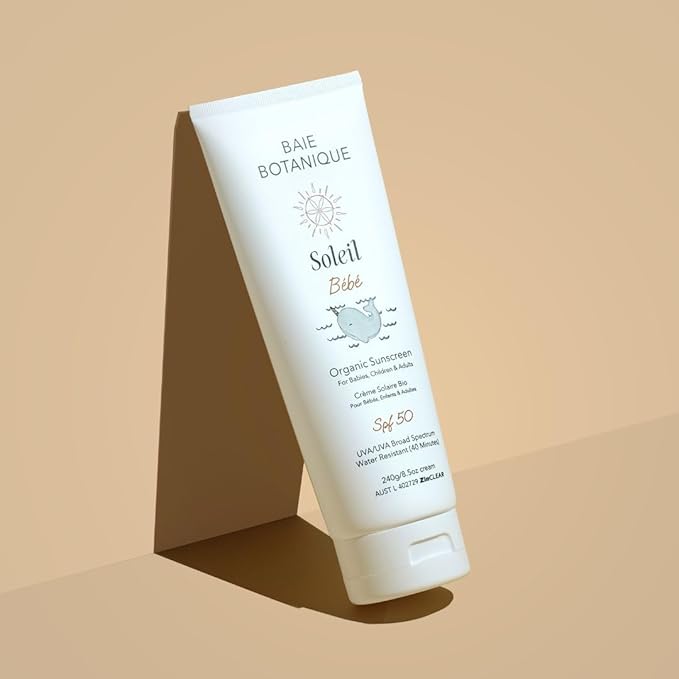 - ORGANIC BABY AND KIDS SUNSCREEN SPF 50 WITH NO WHITE CAST: Providing broad-spectrum UVA and UVB protection, Baie Botanique Soleil Bebe Organic Non-Toxic Mineral Baby Sunscreen is mild on skin. The gentle formula allows for smooth application and easy absorption without leaving a white residue or staining clothes. Suitable for kids who might be sensitive to prickly heat, the formula's breathable composition repels water.