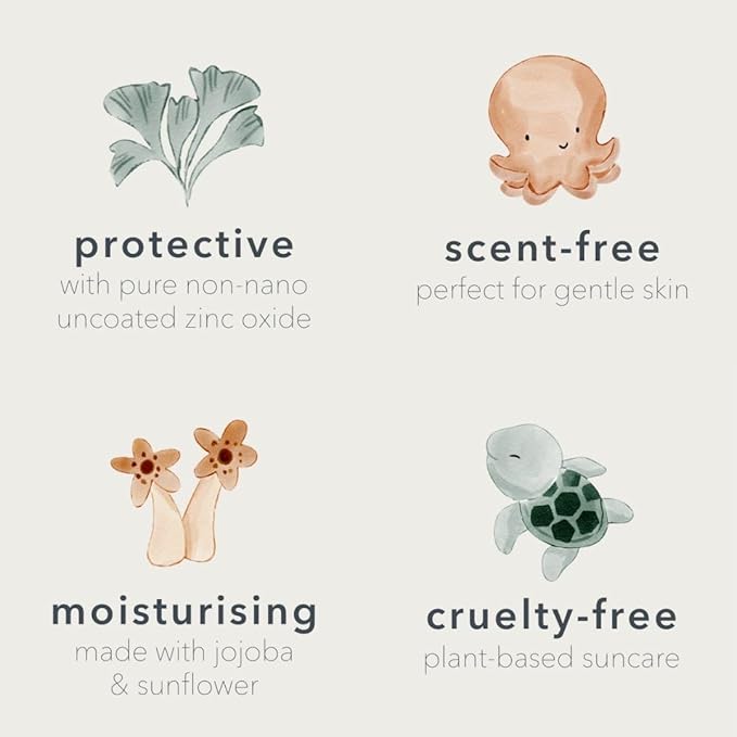 - NON-NANO ZINC OXIDE 25% NATURAL FORMULA FOR CHILDREN: We use Non-Nano Zinc Oxide as the only UV filter in our baby sunscreen formula. Babies' and Kids' skin is naturally nourished and protected with our SPF 50 unscented baby sunscreen, which contains sunflower and jojoba seed oils. Rich in antioxidants to shield skin from damage caused by free radicals and moisture-retaining for hydrated skin. It also helps to calm the skin.