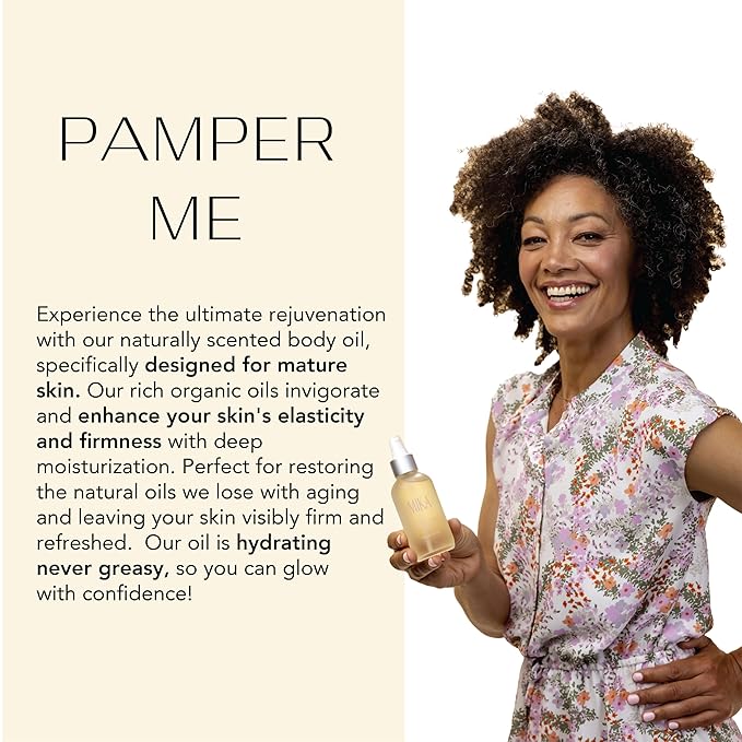 - Invigorating Natural Scent: No Synthetic Fragrances - Pamper Me Body Oil is lightly scented with natural botanical ginger and bergamot extracts, it provides an invigorating scent that disappears quickly, leaving behind a spa-like experience every time you use it.