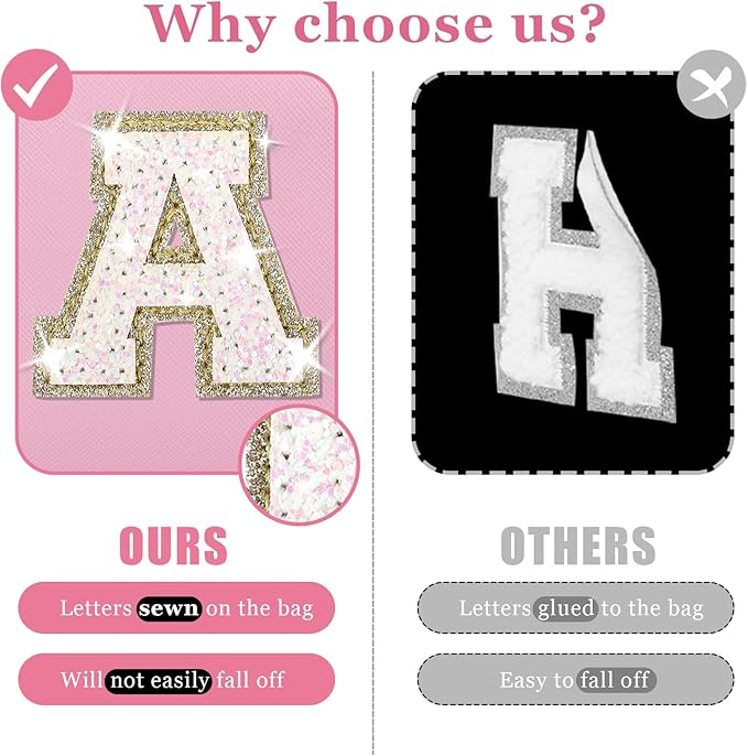 - 【Personalized Letter Design】Personalized initial letter makeup bag is designed with stitched glitter sequin letters, you don't have to worry about it falling off. Unique glitter 26 letters design, the shiny gold border and glitter sequin letters shimmer charmingly, the cute flower bet lettering patches have a strong personalized style, making your makeup bag the center of attention.