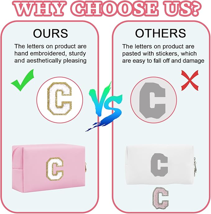 - 【Ideal Gift】The different letter patch make each makeup bag unique and suitable for different scenes or festivals. Ideal gift for birthday, thanksgiving, Christmas, New Year, graduation day, teacher appreciation week, etc. It is also the perfect gift for friends, girlfriends, bridesmaids, family and colleagues.