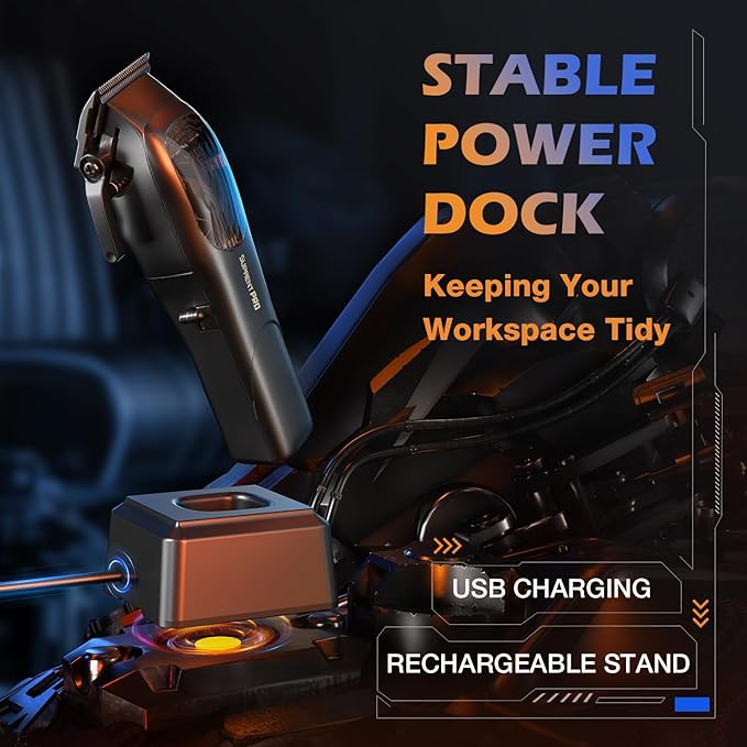 - 【Cordless Charging Stand】The rechargeable base provides you with convenient charging. Say goodbye to tangled cords and constant battery changes, just plug your device into the charging base and enjoy a fast and efficient charging experience. Once fully charged, you can confidently and effortlessly enjoy a worry-free cordless/corded haircut experience without any interruptions. If you're looking for an innovative barbering experience, SUPRENT is the perfect choice.