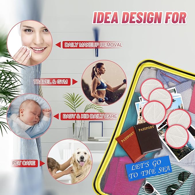 - Home Use & Travel Friendly - Our portable reusable cotton rounds set can go in your travel bag, gym bag or luggage for effective makeup removal anywhere. It's also a ideal gift for makeup and beauty lovers and eco-friendly enthusiasts!