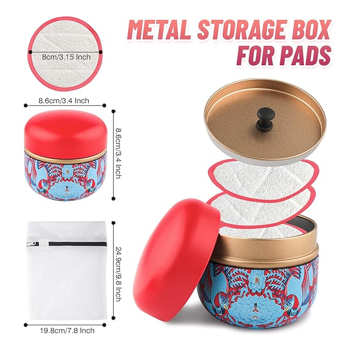 - Easy Wash & Easy Storage - Each purchase comes with a zipped mesh laundry bag and a well-designed metal box.After each use,place the makeup remover wipes in the laundry bag and machine wash or hand wash at 40°C.