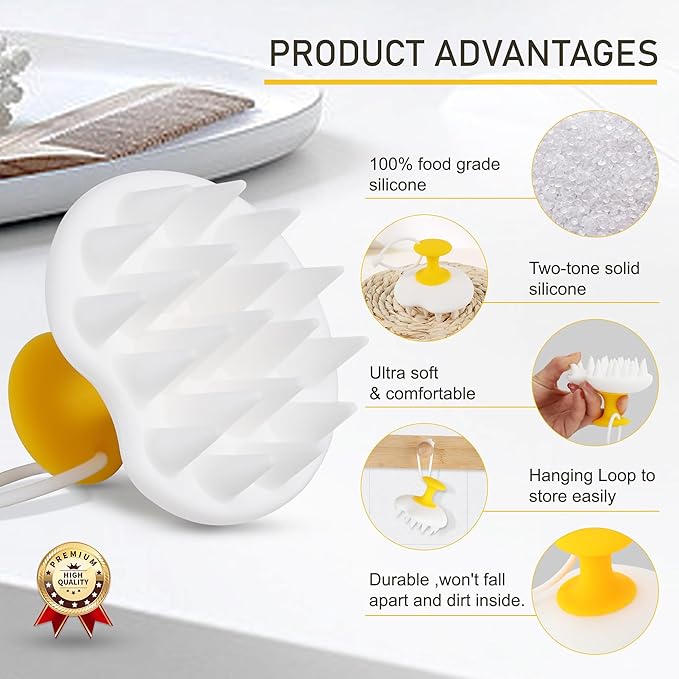 - ❁【High-Quality Material】Crafted From 100% Food Grade Silicone, Shampoo Brush Prioritizes Safety, Durability, And Hygiene. Unlike Other Scalp Brushes, Hair Shower Brush Will Never Fall Apart Or Break, Thanks To Its Premium Silicone Material. Waterproof And Moisture-Proof, It Eliminates Concerns About Mold And Water Accumulation.