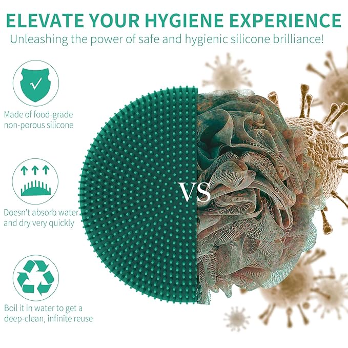 - MORE HYGIENIC OPTION: Unlike loofah, wash cloth and exfoliating sponge, BEAUTAIL body scrubber is made from non-porous, self-cleaning silicone, which doesn't absorb water, dries quickly, so it isn’t as susceptible to building up with unpleasant substances.