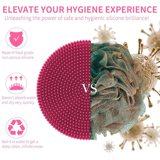 - MORE HYGIENIC OPTION: Unlike loofah, wash cloth and exfoliating sponge, BEAUTAIL body scrubber is made from non-porous, self-cleaning silicone, which doesn't absorb water, dries quickly, so it isn’t as susceptible to building up with unpleasant substances.