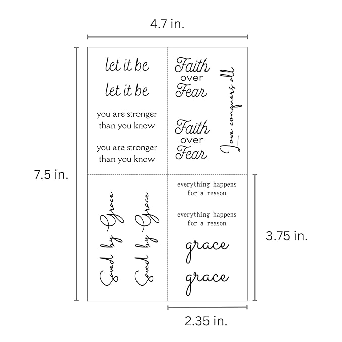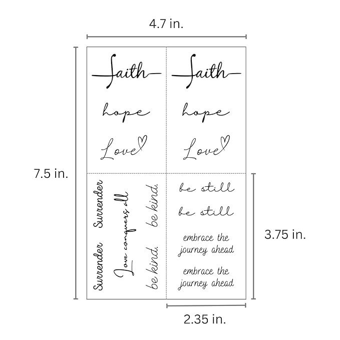 - ✨ Quick and Easy Application - Apply tattoos in 30 seconds. Easily remove tattoos with baby oil. Have the flexibility to change your affirmations whenever you choose.