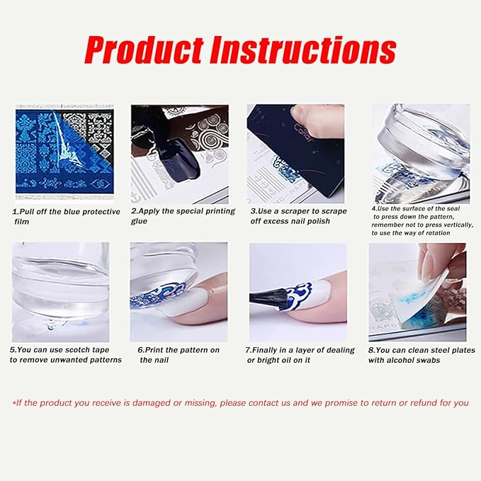 - 🍀Need Notice: Due to different nail polish quality, some nail polish is not suitable for stamping, plz choose the right nail polish, if the first time you can not transfer the design to the stamper, try again or contact us, Thanks.