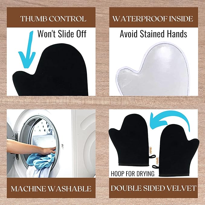 - High-Quality materials: Crafted from premium materials, our tanning glove and tanning mit are designed for durability and smooth application. The self tanner brush and self tan remover ensure precise application and flawless removal, enhancing your tanning experience.
