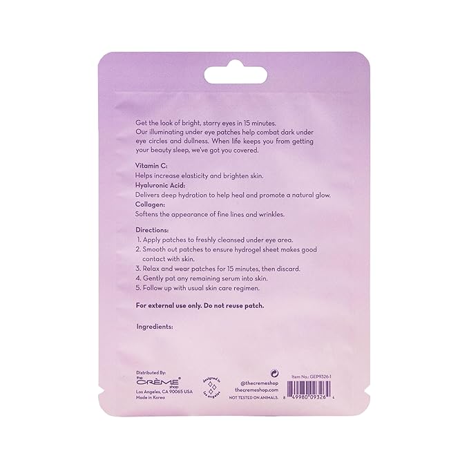 - BRIGHTENING & DEPUFFING IN 15 MINUTES: Achieve bright, starry eyes quickly with our vegan illuminating under eye patches, designed to combat dark circles and dullness.