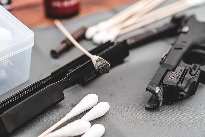 - INCLUDES: .22 (50 count), 9mm (50 count), .40 (50 count), .44/.45 (50 count) caliber sized swabs, General Cleaning tips (100 count) and Pointed Tip swabs (100 count) in a plastic storage case