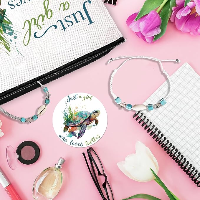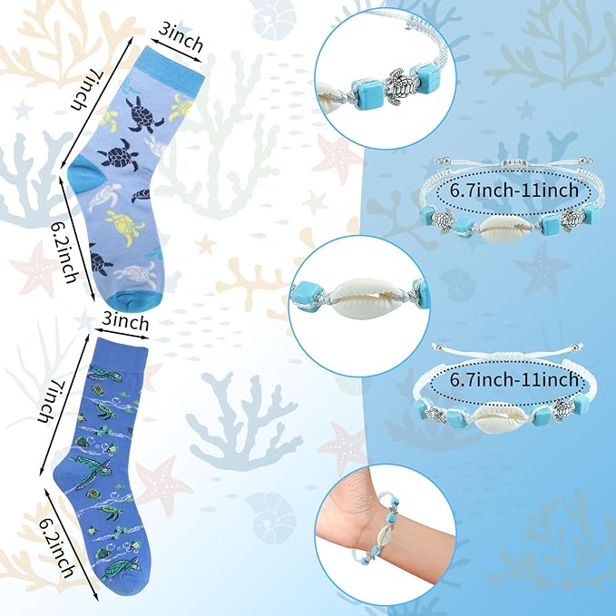- 【Package Include】- The turtle gifts include 1 Turtle cosmetic bag, 2 pairs of cartoon Turtle socks for women girls, Two bracelets, 1 small Turtle single round mirror, which is lovely and thoughtful, and rich combinations can meet your different needs.