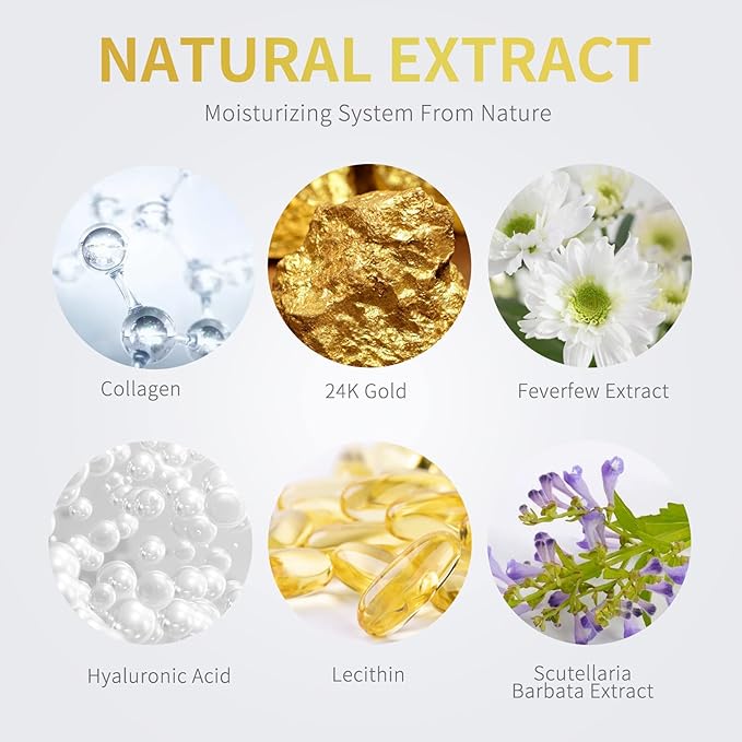 - ๐๐ใSafe & Effective Formulaใ: Infused with a blend of collagen,castor oil, 24k gold, glycerin and multiple forms of hyaluronic acid which can quickly penetrate into the basal layer, deeply repair the eye skin and promote blood circulation,100% safe without any side effects. Our eye masks for dark circles and puffiness are formulated to be gentle yet effective on all skin types