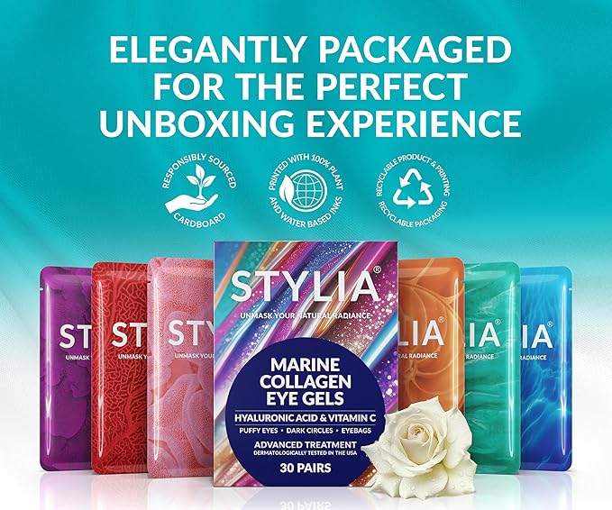 - ENHANCE YOUR GLOW WITH OUR EYE MASKS FOR PUFFY EYES: Stylia's collagen-infused under eye patches are specifically designed to cosmetically enhance the appearance of wrinkles and fine lines.