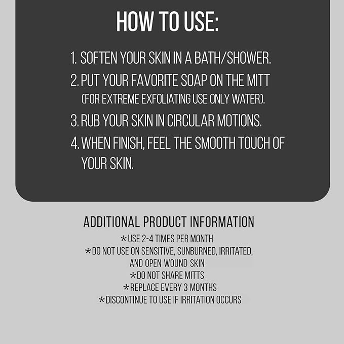 - 100% viscose construction of microdermabrasion mitt used in korean spa at your home