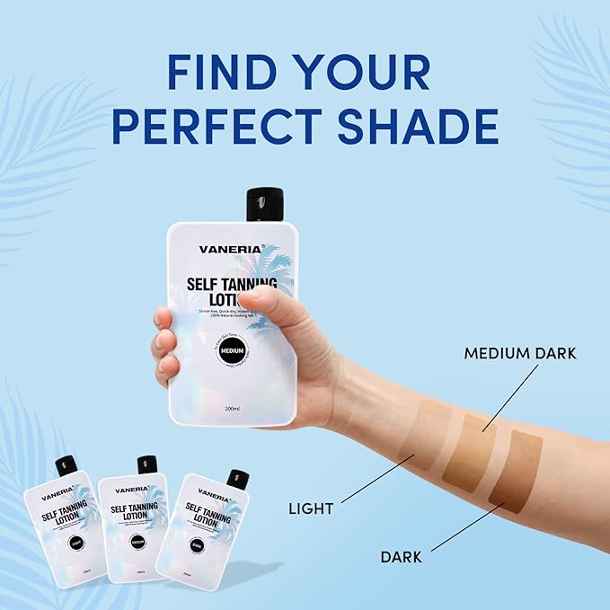 - Beautiful Natural Looking:VANERIA Self Tan Series is natural self-tan body treatment with full skin care benefits. Instant self tanning lotion Transforms your skin without any of those nasty streaks or blotches for a beautiful natural looking, golden glow with no orangey tones