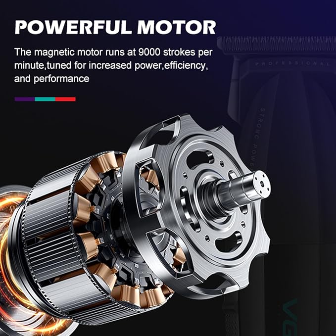 - 9000RPM PRO MOTORS: Our barber trimmer, operating at an impressive 9000 RPM,adjust the power according to the resistance of the blade and cut at a constant speed. Effortlessly caters to all hair types, including head, beard, body, and mustache, ensuring versatile and efficient grooming